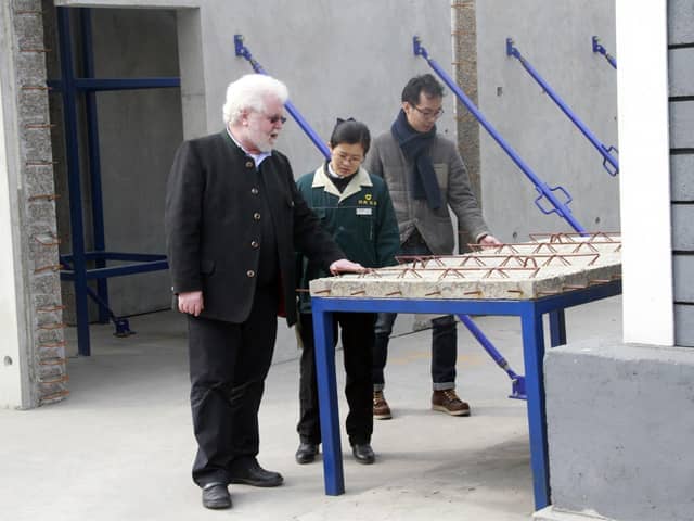 德國外賓Dipl.lng. Bernhard Heid和Wolfang Foerster參觀了天意機械的6A智能辦公大樓、省級研究中心、體驗館、 智能會議中心、國家住宅產(chǎn)業(yè)化基地樣板別墅、設備生產(chǎn)車間,并對德國外賓詳細講解了墻板設備的技術性能與行業(yè)現(xiàn)狀,同時還參觀考察了公司鋁型材加工基地,鋼結構加工基地,德國外賓對天意機械的行業(yè)發(fā)展規(guī)劃和生產(chǎn)加工制造工藝給于了高度的評價 。