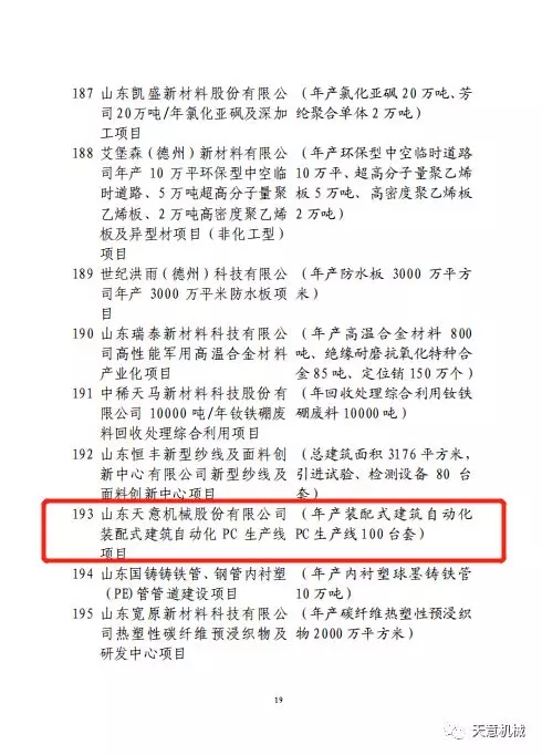 2020年2月 12日,天意機械的裝配式建筑自動化PC生產(chǎn)線項目入選2020年省新舊動能轉換重大項目庫第一批優(yōu)選項目。對于優(yōu)選項目省內各級政府將會進一步加大政策協(xié)調支持力度,全面落實土地、能耗、用水、環(huán)境容量、資金等“要素跟著項目走”機制,全面建立項目評審綠色通道,簡化審查審批環(huán)節(jié),在依法合規(guī)前提下加快項目手續(xù)辦理進度。天意機械的裝配式建筑自動化PC生產(chǎn)線項目入選省優(yōu)選項目,既體現(xiàn)了省政府對該項目的重視,也體現(xiàn)出該項目具有新舊動能轉換的先進性。